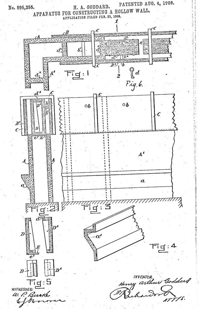 Camerated concrete was constructed by jump forming concrete with a cavity between the internal and external skin of wall. Henry Goddard patented the system in 1905 as “An improved method of Building in Cnocrete and Apparatus Therefor”, first using it in his Ada Street houses. The system is similar to one patented by Charles May 51 years earlier. Other examples of camerated concrete in the Sydney area were located in Five Dock. The rights for the system was sold in parts of New South Wales, Tasmania and in New Zealand.
